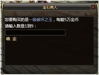点击“5级宝石袋”,弹出面板上输入购买个数。(宝石袋不能叠加,请注意背包内的空位)