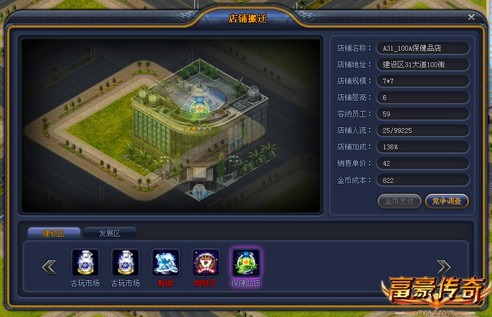 还在为公司升级后更换城区而烦恼吗?还在担心店铺拆除重建后的认知度吗?别担心!店铺整体搬迁系统帮你解决!新版本中,在你选择的地皮上会出现搬迁选项。选择你希望移动的店铺后,目标店铺就会像自己长了翅膀一样飞过来哦,原来的店长、员工、士气和认知度,一样都不会少。省力又省心!