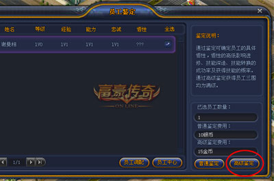 高级鉴定功能:通过高级鉴定的员工三围直接10级