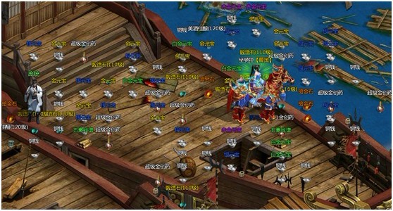 玩家可在陆地、战船和水域上自由行走,当玩家移动至水域时角色自动变为小型战船;