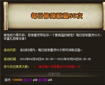 活动内容:五一节当天登录游戏的玩家都可以获得一份节日大礼包