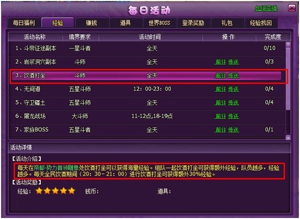 2、 新增了全民喝酒活动,时间为每天的20:30-21:00,在时间段内可获得额外奖励。