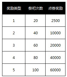 1. 祭祀到一定次数(含免费次数)即可获得点券奖励,详细见下表。