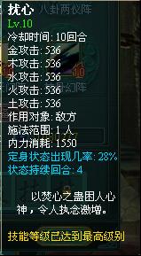 扰心——单体五行攻击,并对目标造成定身效果