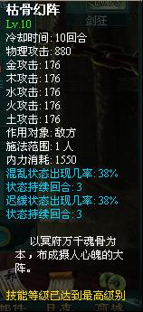 枯骨幻阵——单体物理攻击及五行攻击,并对目标造成混乱以及迟缓效果(在60级之后的灭魂坛以及60层之上的通天塔之中掉落)