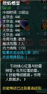 烈焰燃雷——群体五行攻击,并对目标造成眩晕效果