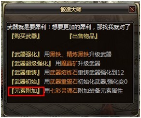 1. 与春之城锻造大师(67,38)对话,选择元素附加功能