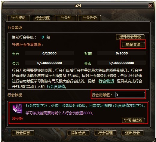 每天有4个任务可以增加行会资源及个人行会贡献值,行会资源可以用于升级行会,个人行会贡献值可以用于学习行会技能。