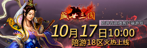 陪游《盛世三国》18区将于10月17日上午10:00震撼开启,与此同时,我们还为各位玩家准备了丰富的活动和好礼,助英雄们驰骋沙场!