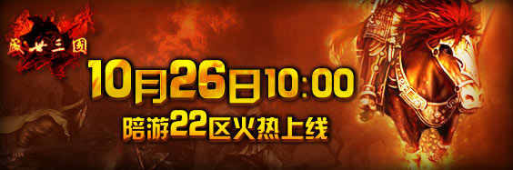 陪游《盛世三国》22区将于10月26日上午10:00震撼开启,与此同时,我们还为各位玩家准备了丰富的活动和好礼,助英雄们驰骋沙场!
